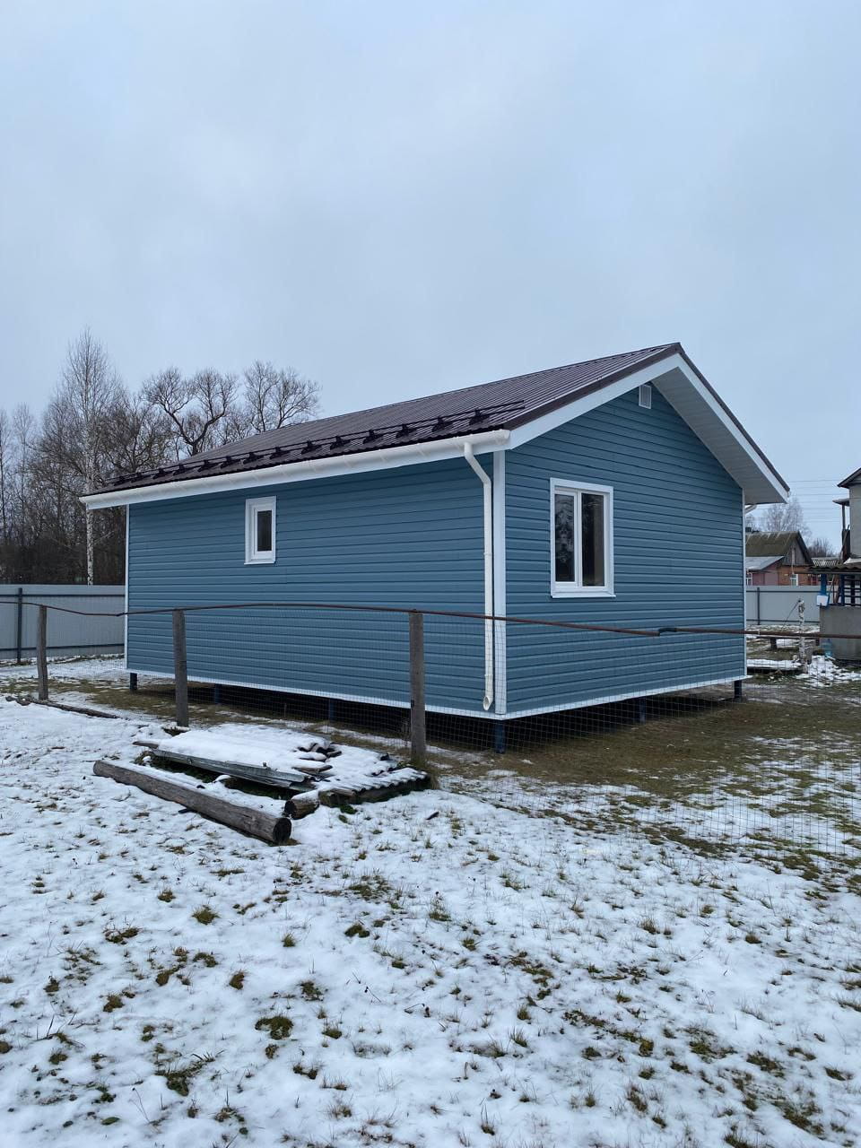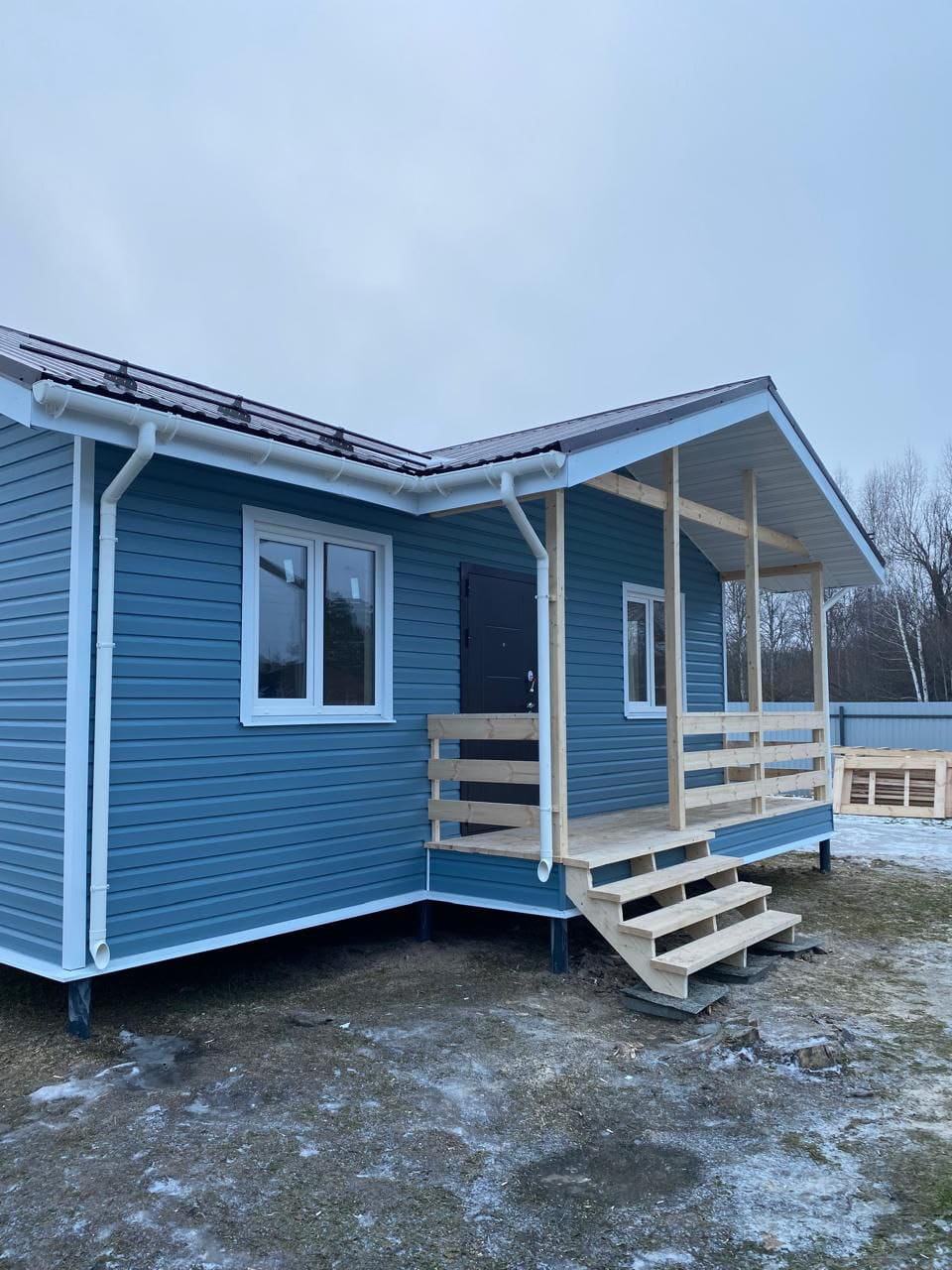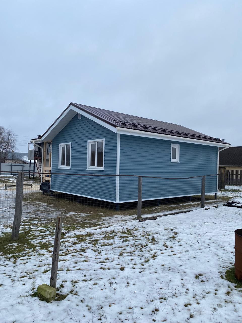 В декабре 2025 наша компания закончила строительство каркасного дома "Охотник" в деревне Хмелевое (Кораблинский район, Рязанская область). Это компактное, современное одноэтажное строение (площадь застройки составила 51,92 м2), на возведение которого (вместе с фундаментными работами) ушло чуть более 30 дней. Мы начали строительство летнего домика 18.11.2025 года, и уже 20.12.2025 года владельцы недвижимости получили ключи. Дом по каркасной технологии пригоден как для сезонного использования, так и для постоянного проживания небольшой семьи.