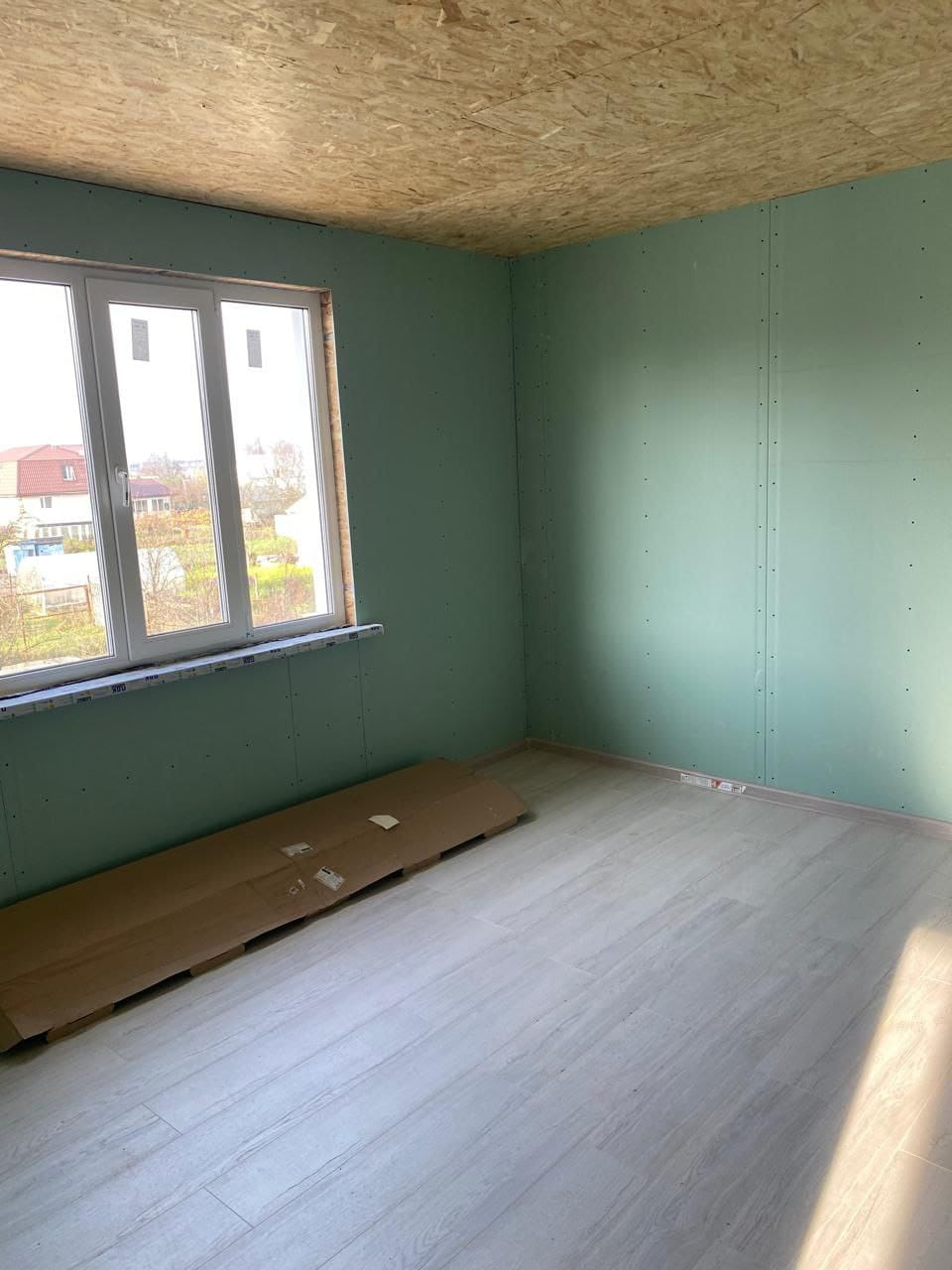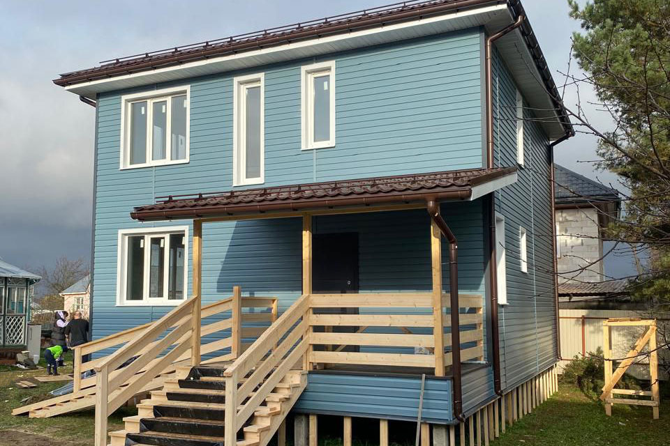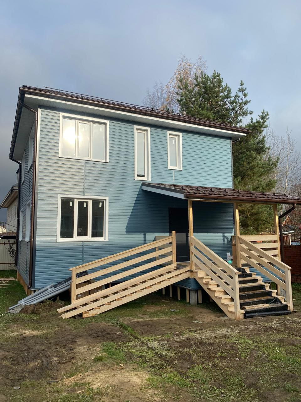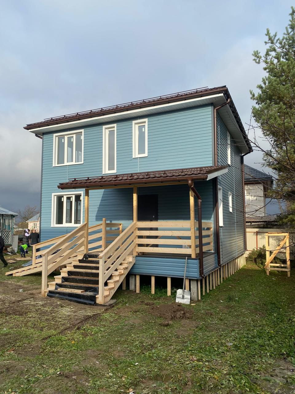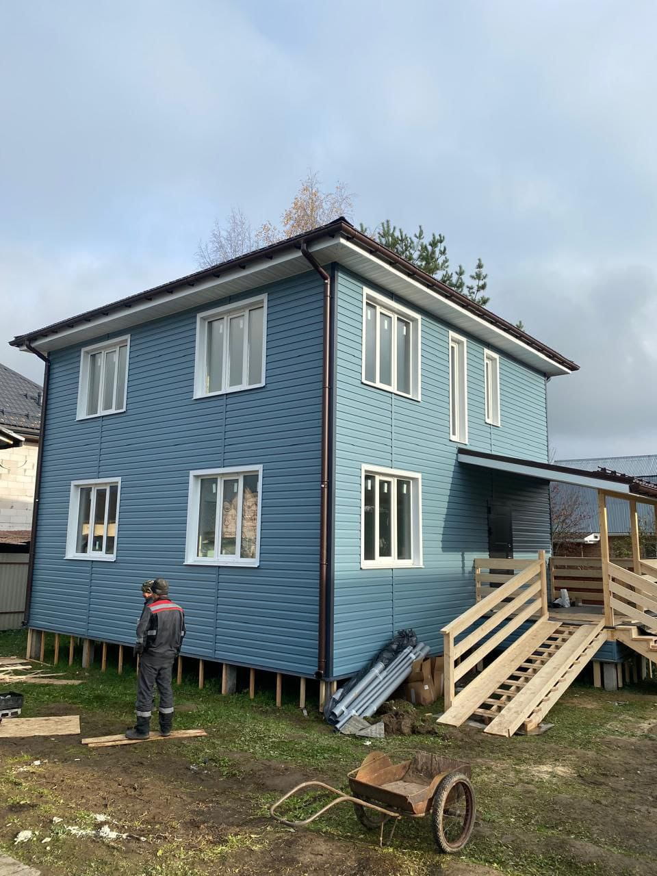 Современный двухэтажный дом "Енисей" для постоянного проживания построен по каркасной технологии за 50 дней. Наша компания начала строительство 13.09.25 г., и закончила 02.11.25 года. Площадь строения составила 114,07 м2 (размеры дома 8х8 м).