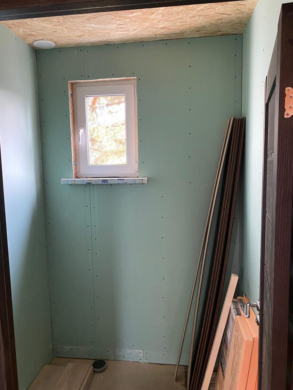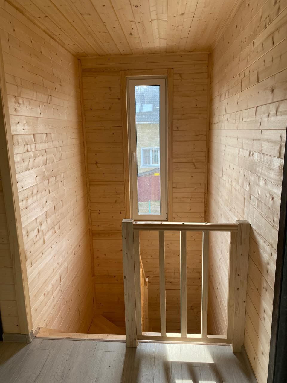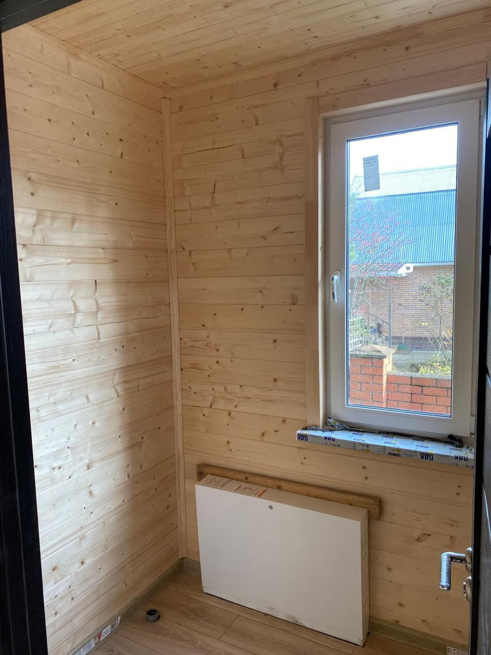 • для отделки внутренних стен использовалась имитация бруса камерной сушки 140 мм (сорт АБ) и гипсокартон, устойчивый к влаге.